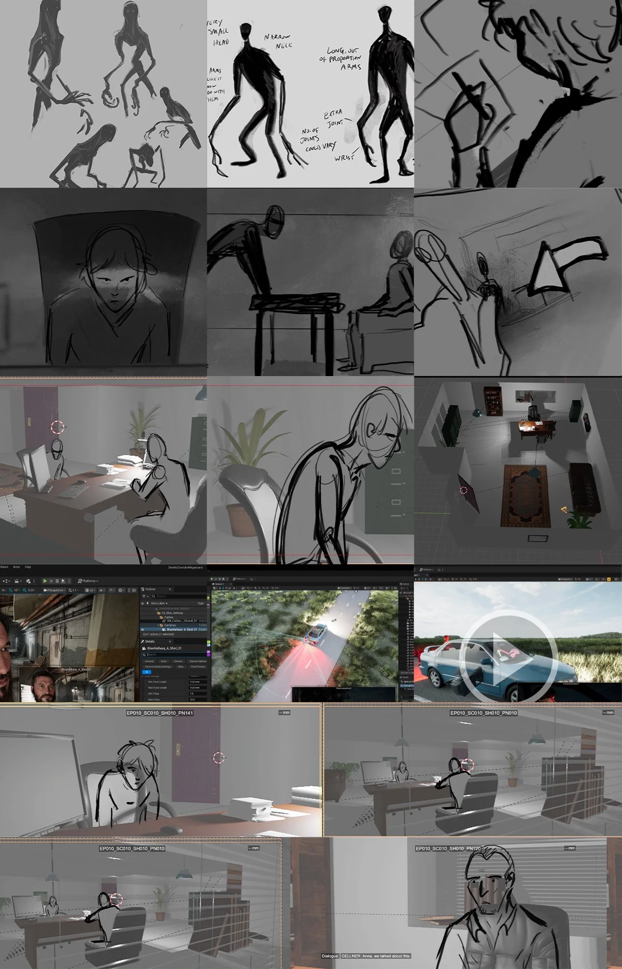 Previs isn’t limited to 3D animation. It includes photos, sketches, storyboards, animatics, recorded rehearsals, digital blocking, and anything that turns text into something you can see.
